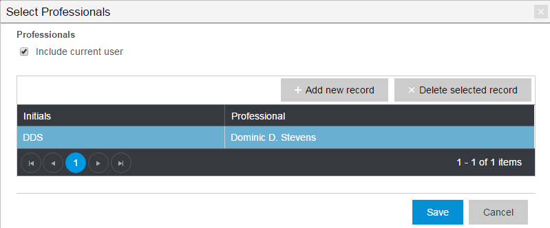 The following fields display on the Select Professionals form.